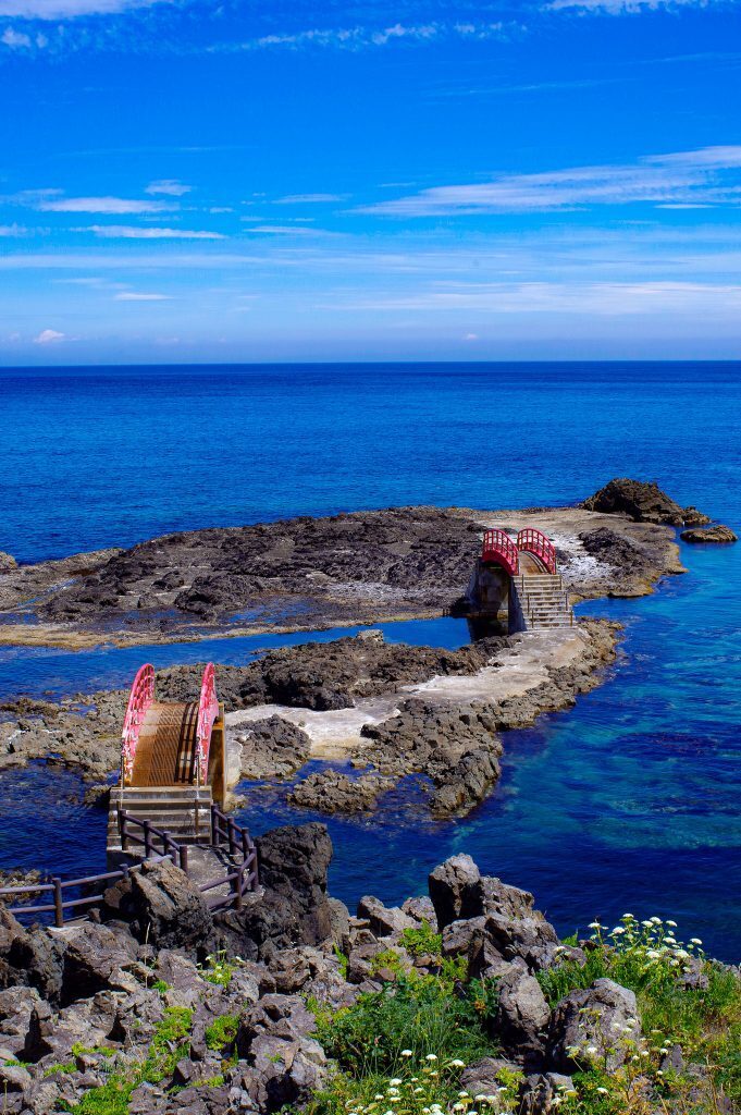岩場をつなぐ赤い橋がとっても印象的です。