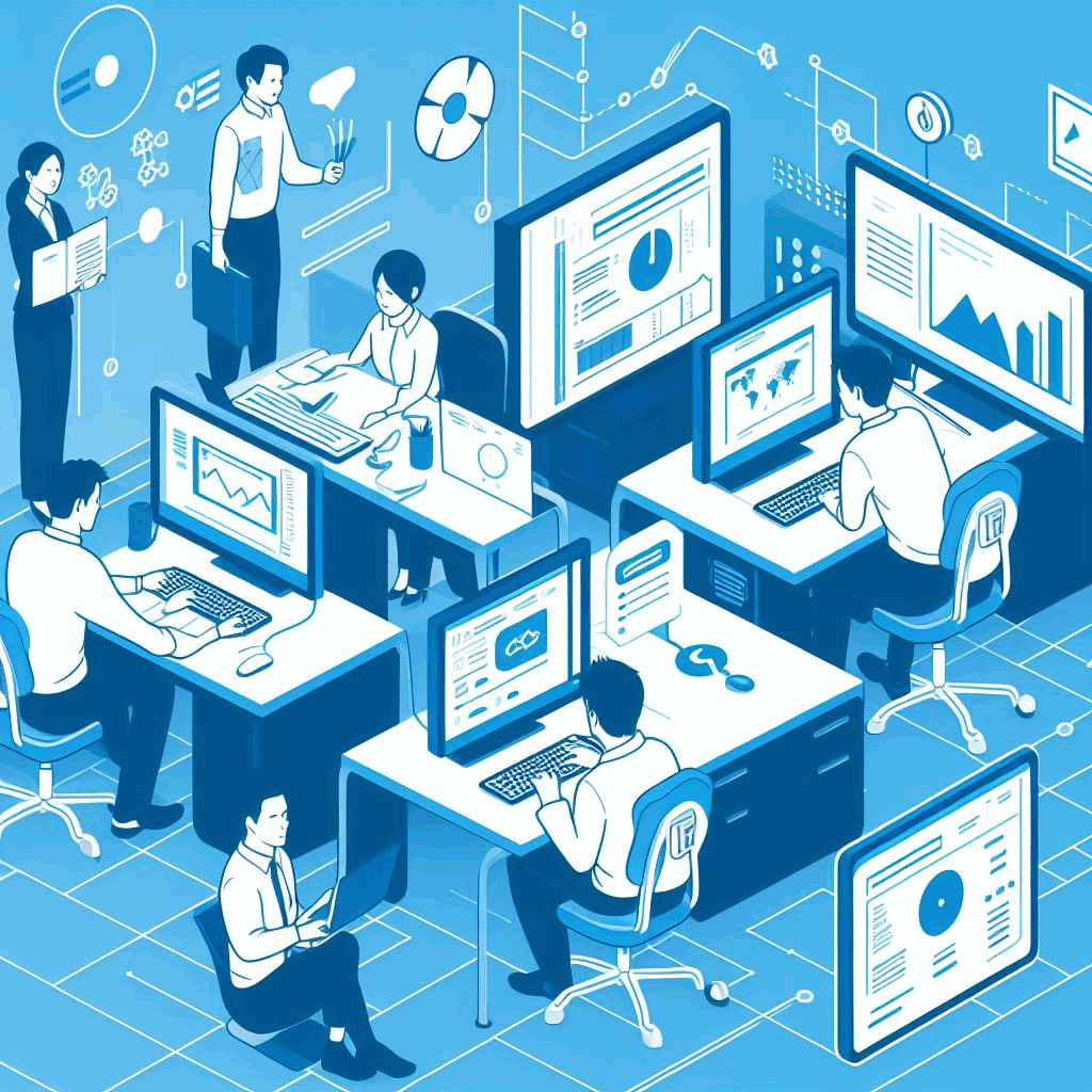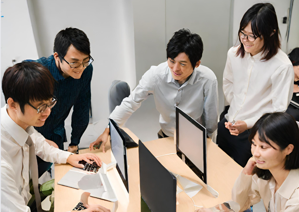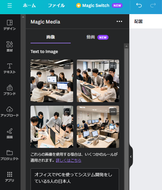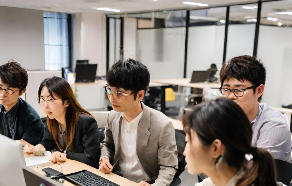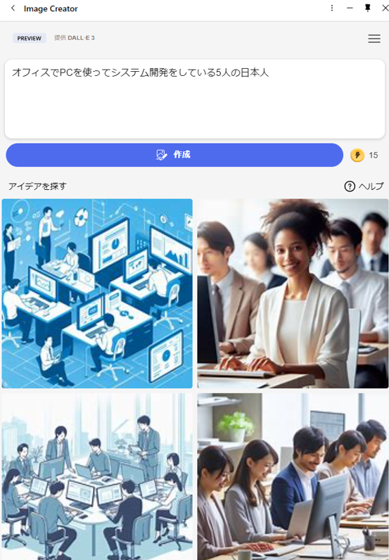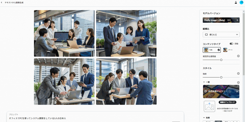 これらの生成AIに「オフィスでPCを使ってシステム開発をしている5人の日本人」というキーワードで画像生成をしてみました。
