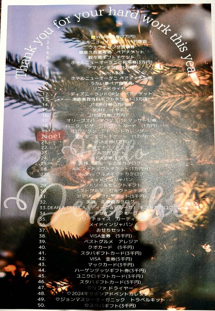 7万円のギフト券から3千円のスタバギフトまで50の賞品が並びます。